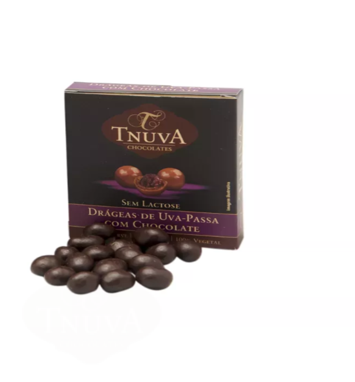 Caixinha de 50g - Passas Drageado ao Chocolate - Zero leite, Zero Glúten, Zero Soja, 100% Vegano- Zero Leite, Zero Glúten, Zero Soja, 100% Vegano