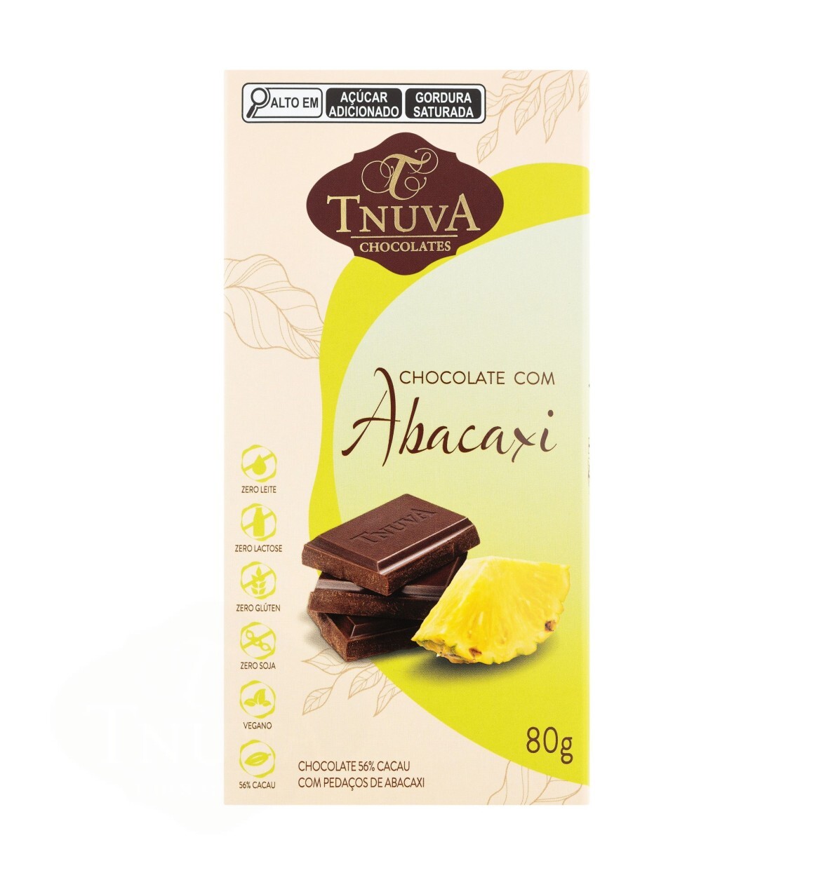 TABLETE CHOCOLATE COM PEDAÇOS DE ABACAXI 80G - Zero Leite, Zero Glúten, Zero Soja, 100% Vegano