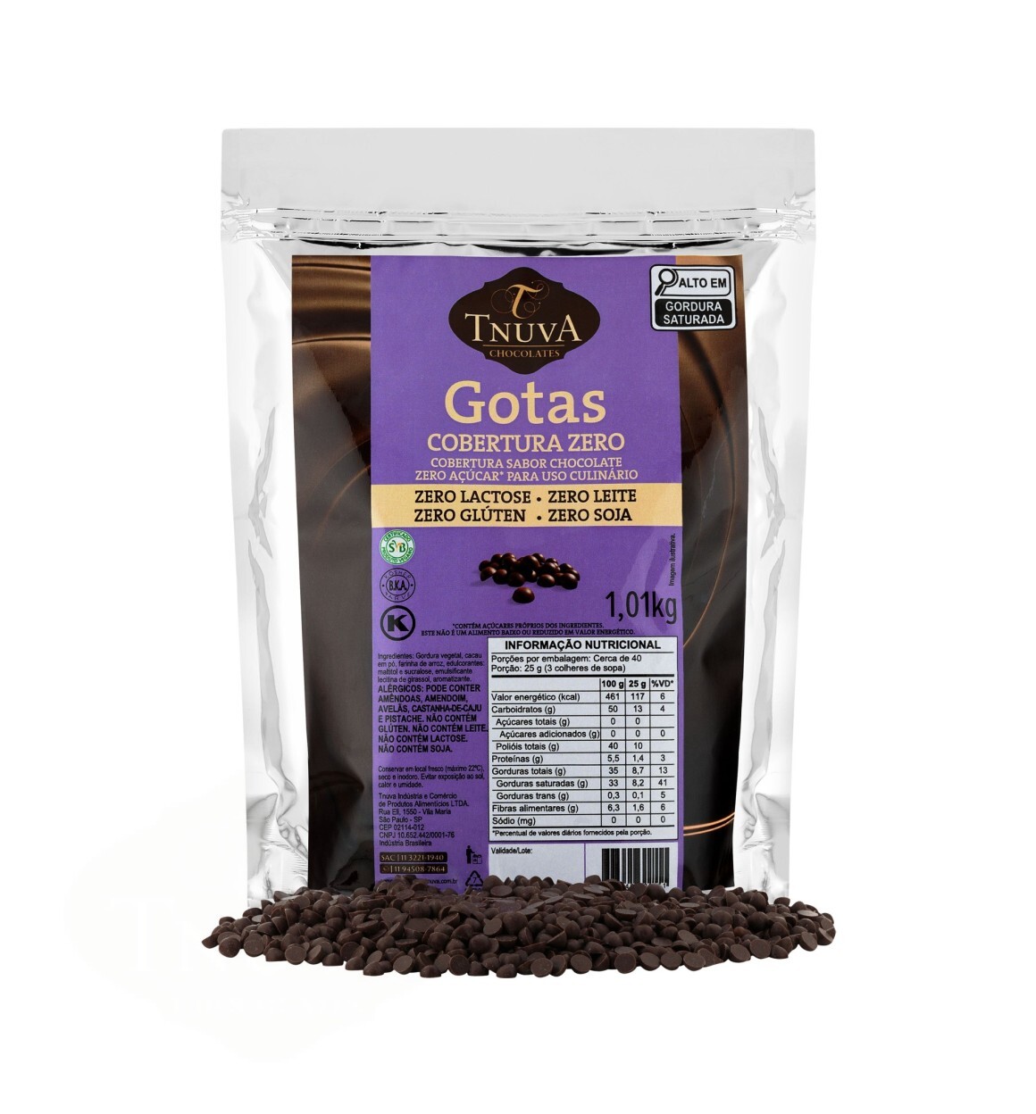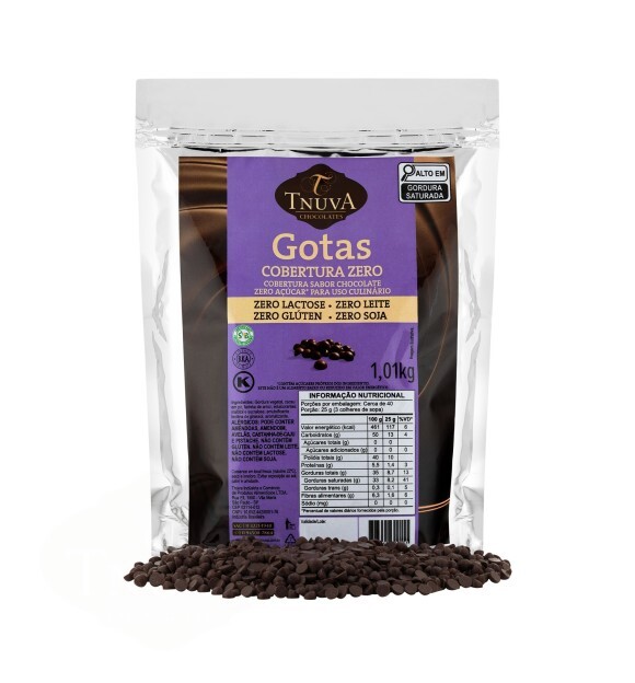 GOTAS COBERTURA SABOR CHOCOLATE ZERO AÇÚCAR USO CULINÁRIO 1,01KG- Zero Leite, Zero Glúten, Zero Soja, 100% Vegano