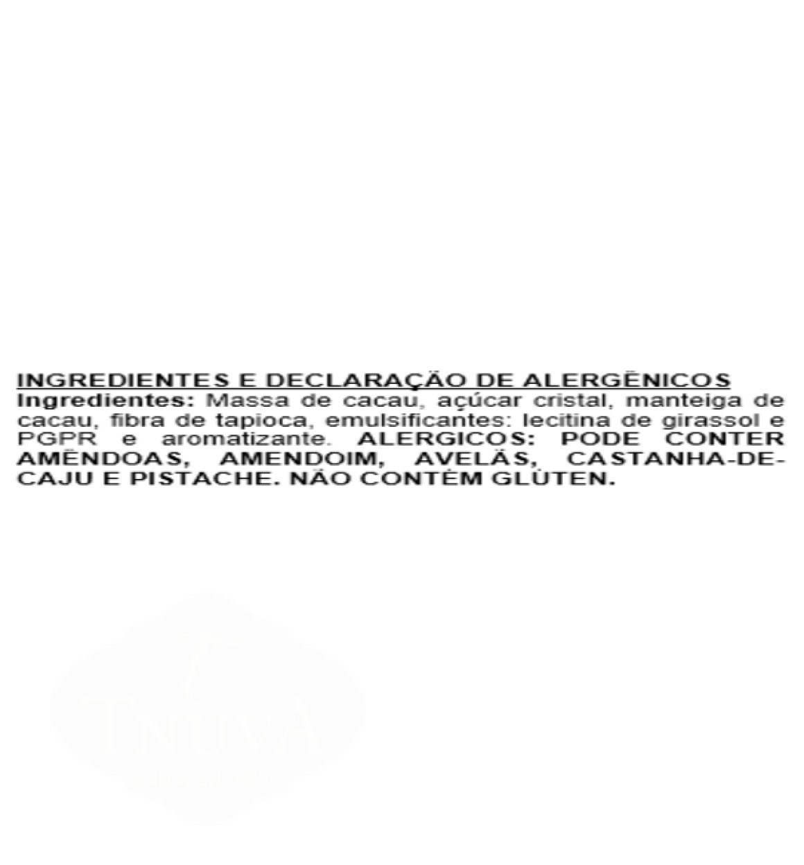 Não contém glúten. Não contém lactose. Não contém proteínas do leite. Não contém soja. Não contém ovos.